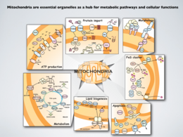 細胞内構造の研究対象として,私たちが精力的に研究を進めてきたのがミトコンドリアです。ミトコンドリアは細胞内の発電所にたとえられるように,生命活動に必須のエネルギーを酸化的リン酸化によって作り出すオルガネラ(小器官)です。それだけでありません。酵母のように呼吸だけでなく発酵で生きられる生物においても,ミトコンドリアは必須です。このことはミトコンドリアが呼吸(酸化的リン酸化)以外にも,細胞機能に必須の働きをしていることを意味しています。ミトコンドリアがないように見える真核生物であっても,ミトコンドリア機能の痕跡はいまだに残っています。ミトコンドリアは,クエン酸回路や脂肪酸のβ酸化などの重要な代謝経路を擁し,アミノ酸,脂質,ステロイド,ヘムなど様々な物質の合成を担い,プログラム化された細胞死アポトーシスにおいても中心的役割を担っています。特に鉄イオウクラスターの合成は,呼吸以外の細胞の必須機能と結びついているのではないか,と言われています。ミトコンドリアが健康であることはヒトの健康につながり,その機能低下が神経変性疾患やがん,糖尿病,老化などと関係することもわかってきています。
