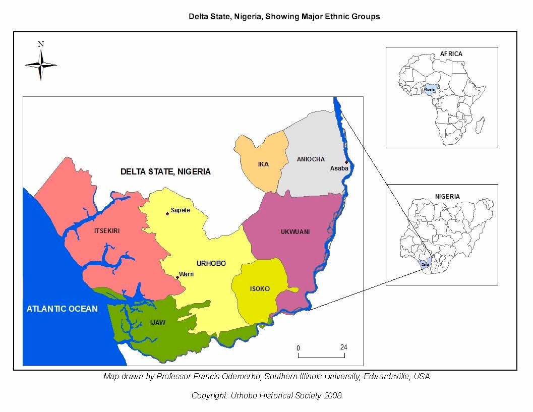 "Anioma" is a generic term for various Igbo groups who live in Delta State, Nigeria on the western side of the Niger River, away from the eastern Igbo "heartland." Although they are considered part of Ala Igbo - "Igboland," their culture is more influenced by that of the Edos and other ethnic groups of the old Benin Empire. The western Igbo dialects, among them