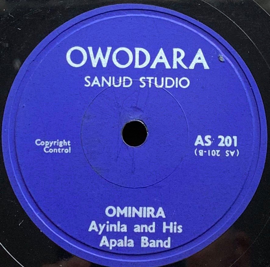 -- Ayinla Omowura started his music called "Olalomi" in the early 50s, and then turned into the music of Apala. This disk, discovered by Yoshiki Fukazawa, was probably released in the late 1950s.